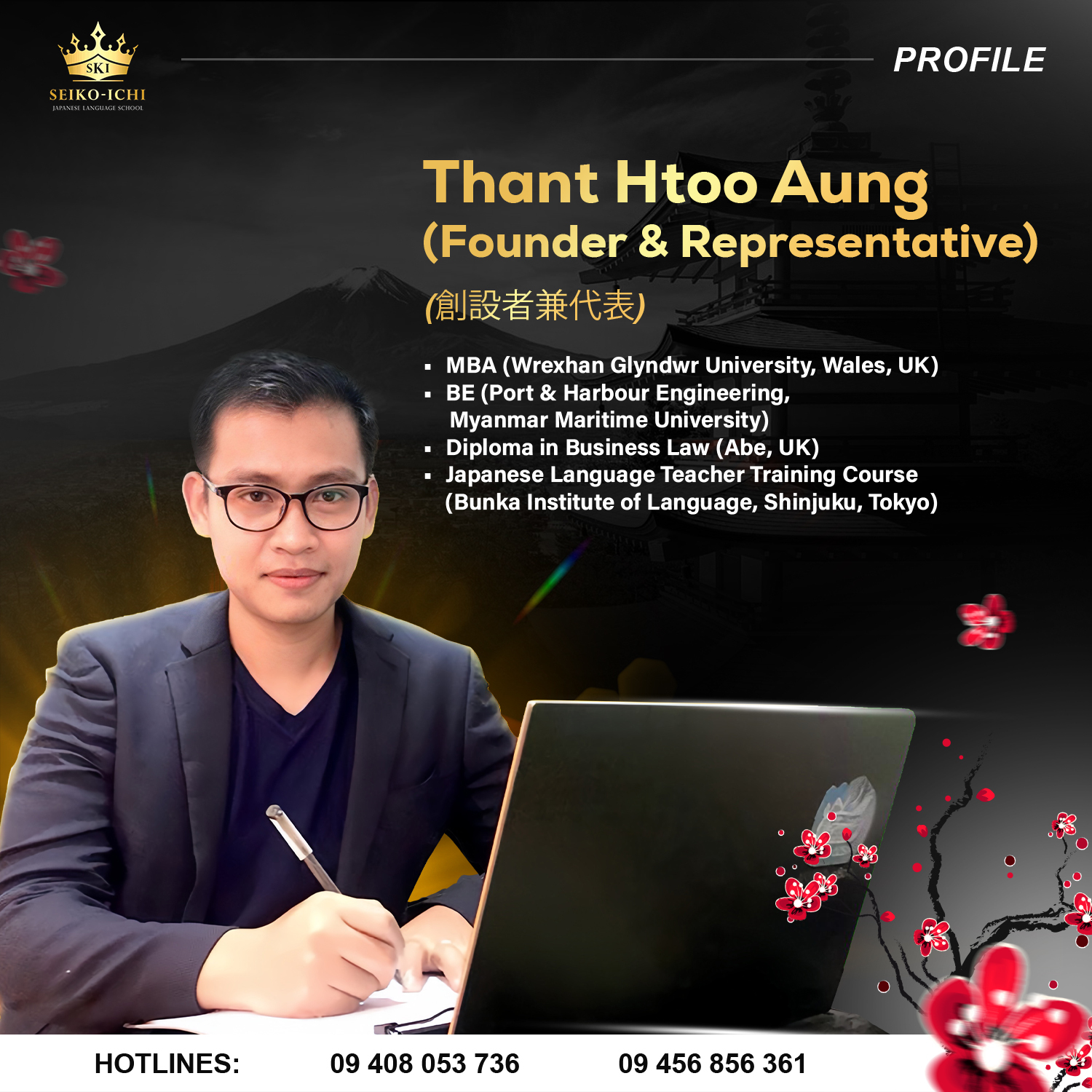 こんにちは。私はSKI-SEIKO ICHI日本語トレーニング学校の統括校長、ZAR NI LINNです。 私たちSEIKO-ICHI(SKI)では、日本語を学ぶ生徒たちが高い能力を身につけ、良い機会を得られるよう、日々尽力しております。日本語だけでなく、日本の文化やマナーにも特に重点を置きながら、指導を行っています。 生徒たちの目標を達成できるよう、経験豊富な講師陣が丁寧に指導し、日本の大学・専門学校への進学を希望する方や、日本企業での就職を目指す方々へ、さまざまなサポートや機会を提供しています。 「言語は世界をつなぐ架け橋である」と信じています。SKIで学ぶことによって、より輝かしい未来を築くことができると確信しています。 生徒の皆さんの輝かしい未来を願って。
