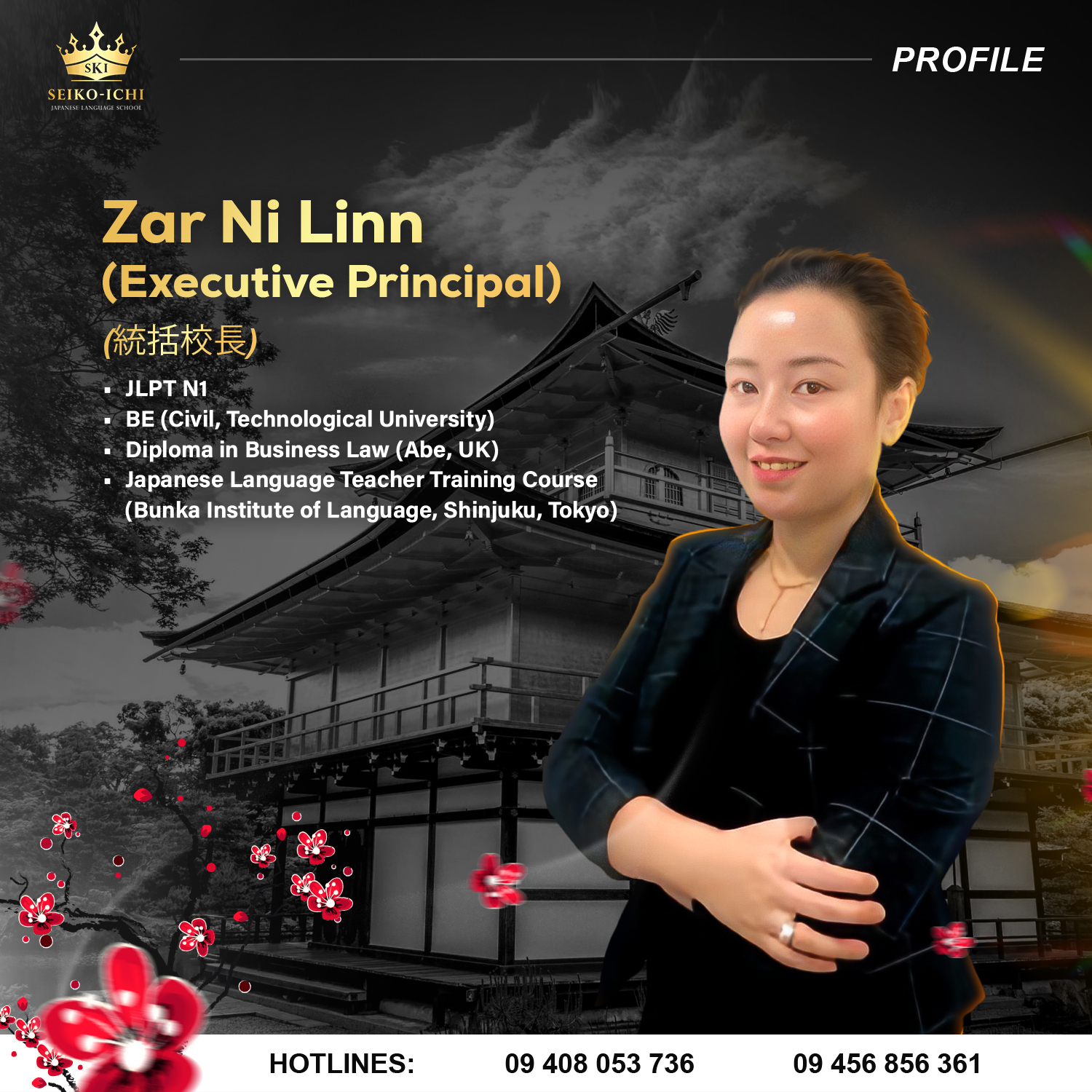 Hello I am ZAR NI LINN, the Executive Principal of SKI-SEIKO ICHI Japanese Language Training School.